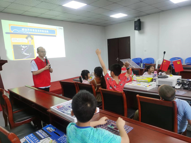 大禹電子第五期公益課:電子百拼(電子百拼積木),大禹電子技術(shù)鐘工聲情并茂的給孩子們講解“電子百拼”的知識。